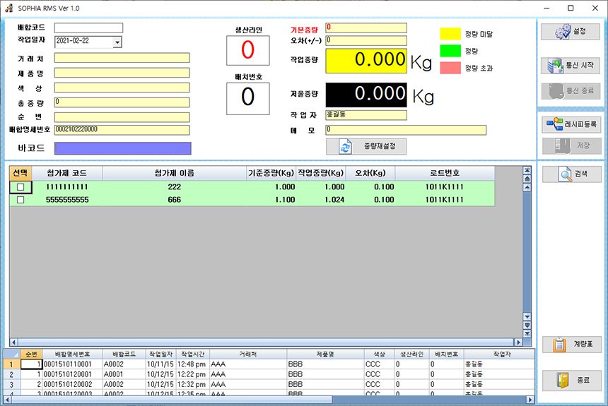 네트워크 PC를 활용한 배합 이력 관리 시스템으로,