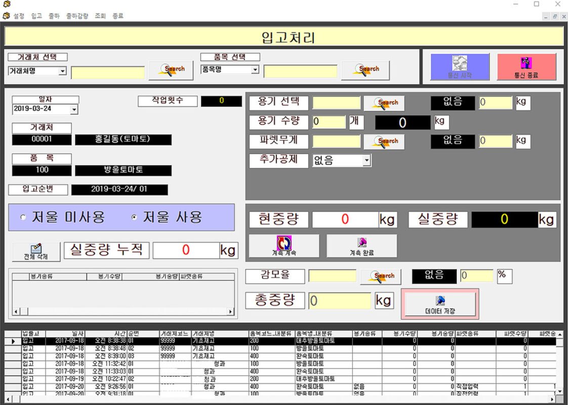 입고 및 출고는 물론, 출하 감량 시 저울 사용 여부 선택이 가능하며,