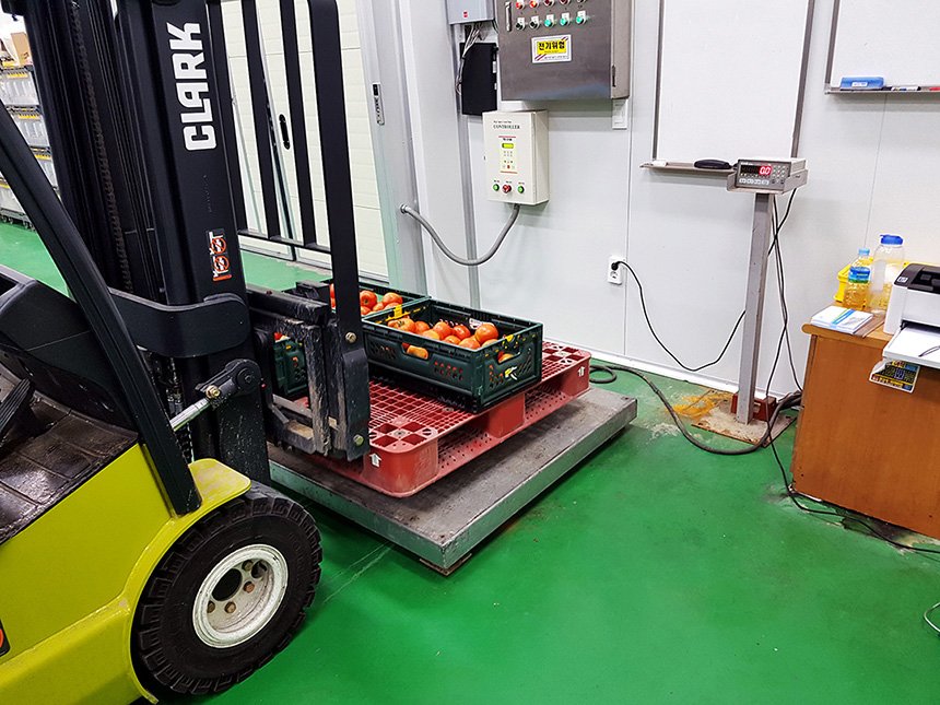납품 받은 업체의 과일 무게를 측정하여 납품 양을 정산할 수 있도록 개발되었습니다.