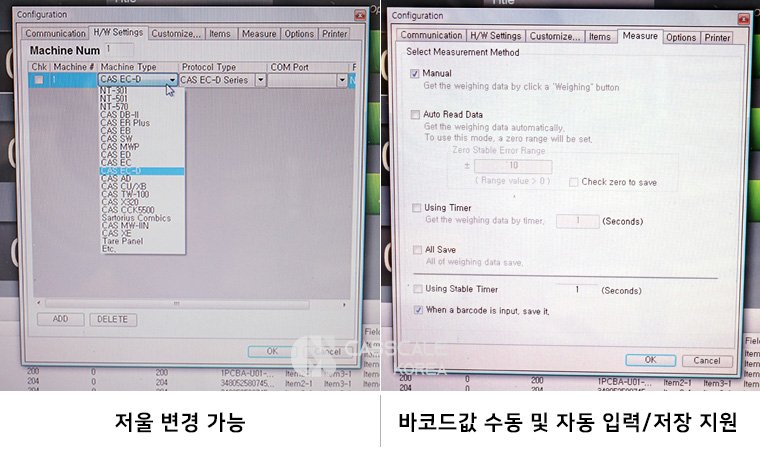 프로그램에 계량 데이터가 바로 표시되며,