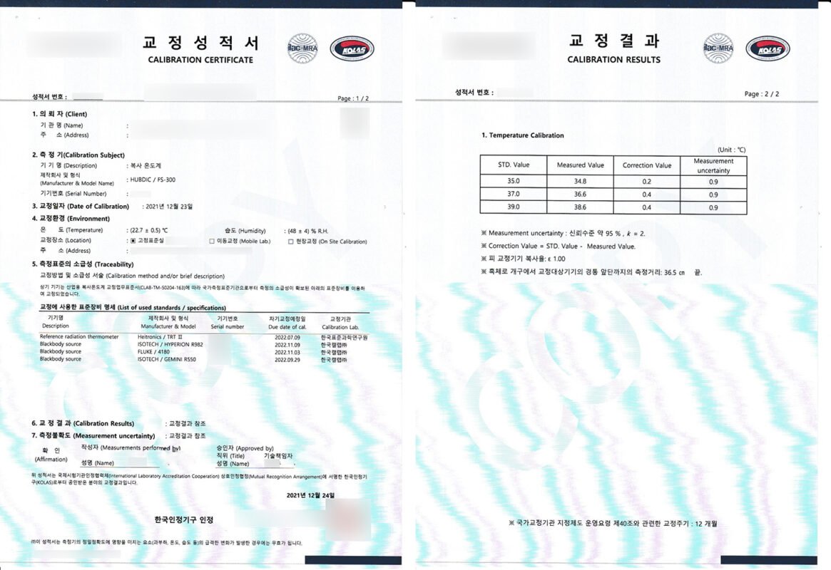 [온도] 분야 교정 : 비접촉 체온계 FS-300