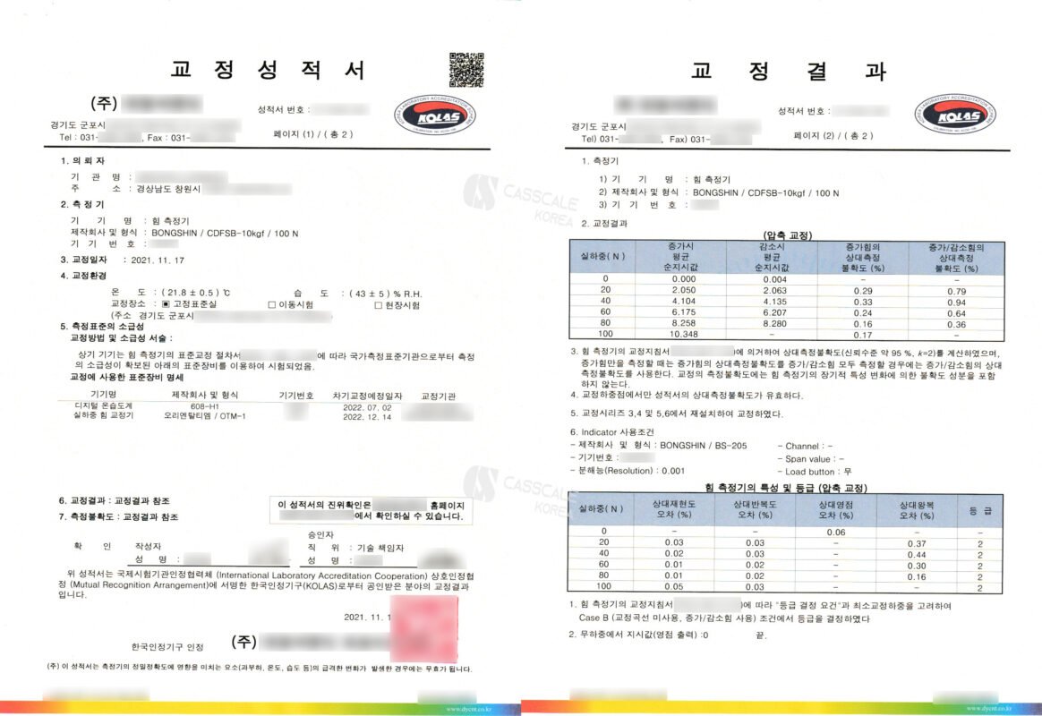 교정이 완료되면 위와 같이 교정성적서가 발행되며,
