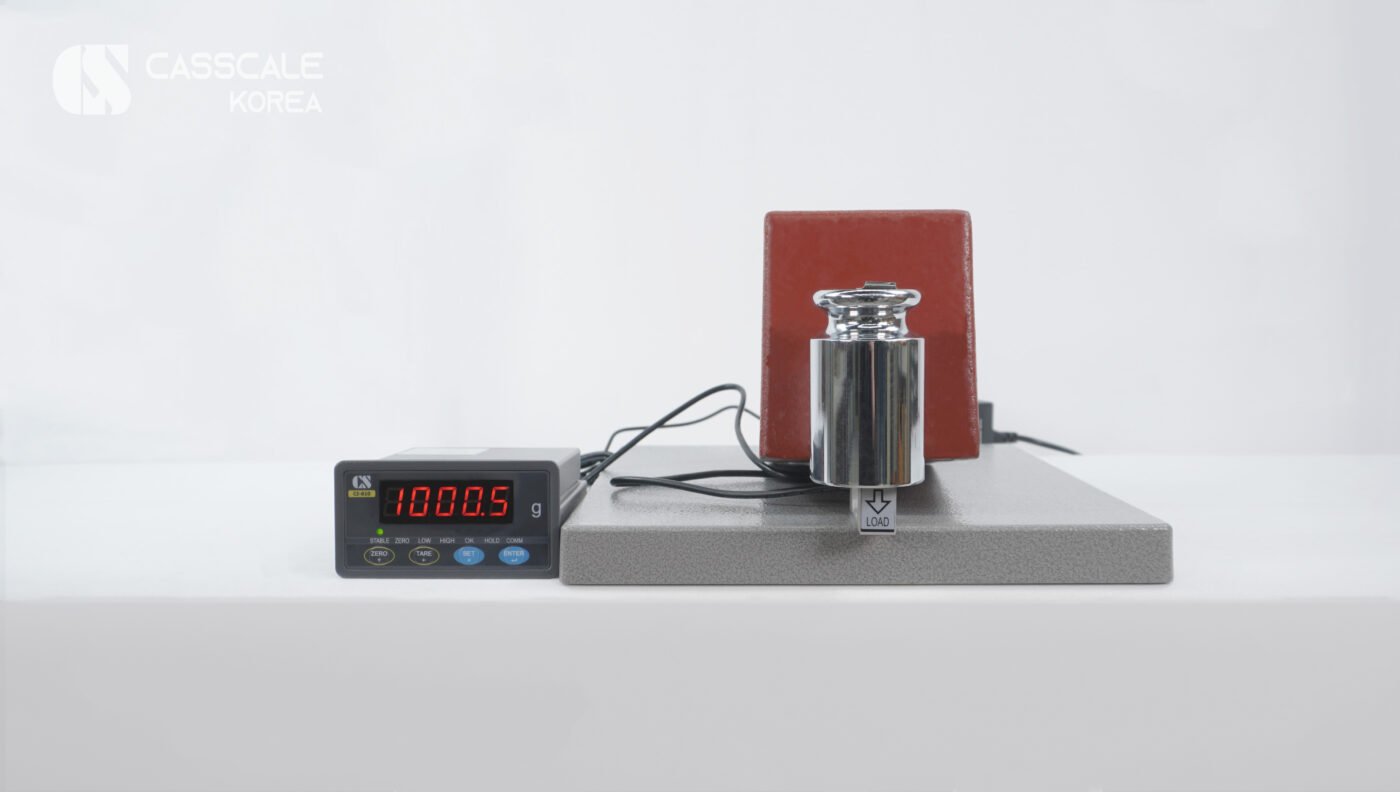 1kg 분동과 0.5g 분동을 올려서 값이 제대로 측정돼는지 확인하는 사진입니다