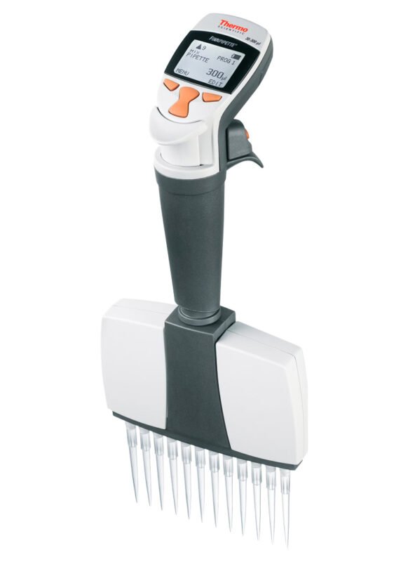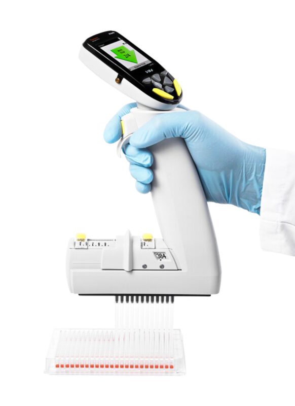 일회용 피펫 팁과 함께 사용되는 전자식 멀티채널 피펫은 액체를 동시에 옮기고 측정할 수 있는 가변 부피 실험실 장치입니다.