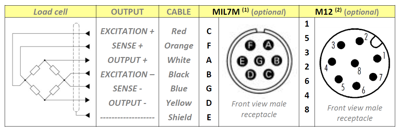 STANDARD OUTPUT: PVC 105°C shielded cable, Ø 5.2mm with 6 × Ø 0.25mm2 tinned conductors.