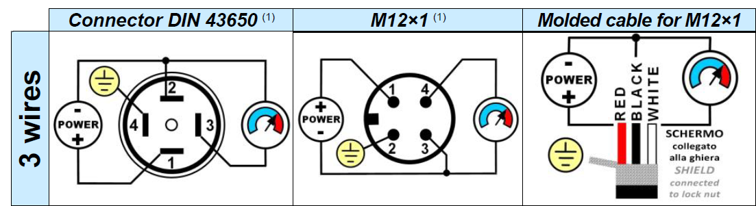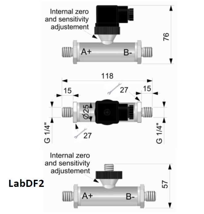 IP65 INOX 17-4 PH DF2: Connector DIN 43650 A/ISO 4400 LabDF2: M12×1 + 4 poles 3m shielded cable |