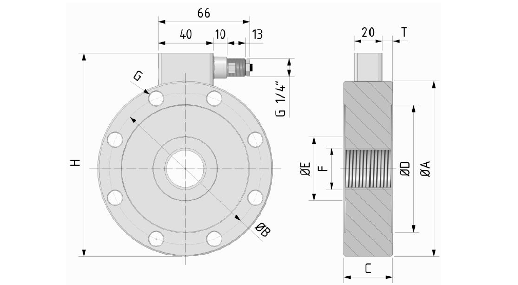 | 5, 10, 25, 50 kN | 108 | 37 | 35 | 36 | Ø76 | Ø127 | Ø100 | M30 × 2 | Ø47 | ~200 |