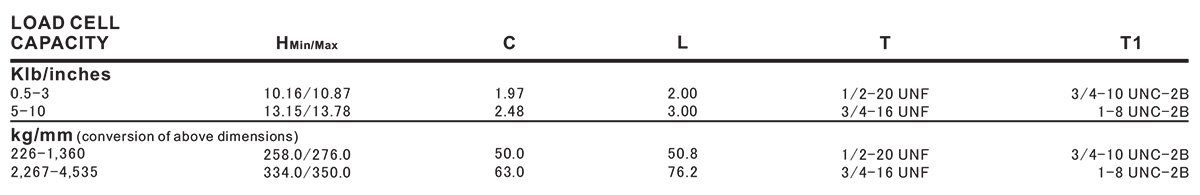 • Also available for our stainless steel load cells 101NSGS and 101BS S-Beam load cells up to 10Klb
