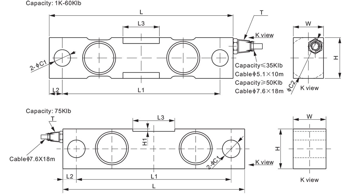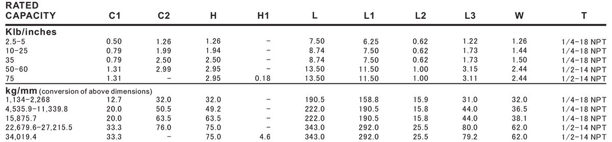 Capacity: 2.5 Klb, 5 Klb, 10 Klb, 15 Klb, 25 Klb, 35 Klb, 50 Klb