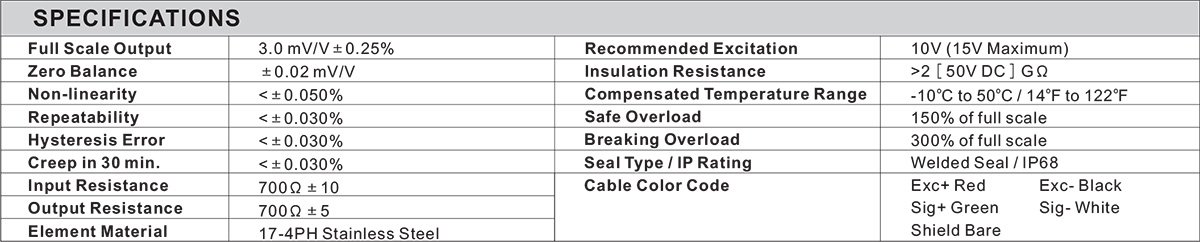 • Full Scale Output: 3mV/V ± 0.25%