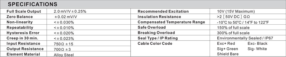 - Full Scale Output: 2mV/V ± 0.25%