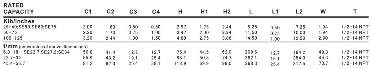 - Rated Capacities: 25Klb, 40Klb, SE50Klb, 50Klb, SE60Klb, 60Klb, SE75Klb, 75Klb, 100Klb, 125Klb
