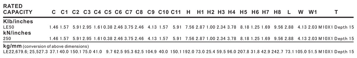 - Rated Capacities: 50Klb, 250kN