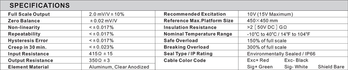 - Full Scale Output: 2mV/V ± 10%