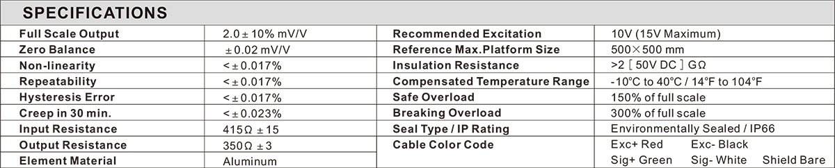 - Full Scale Output: 2mV/V ± 10%