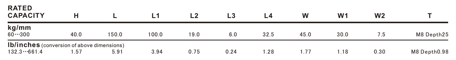 - Rated Capacities: 60kg, 100kg, 150kg, 200kg, 300kg