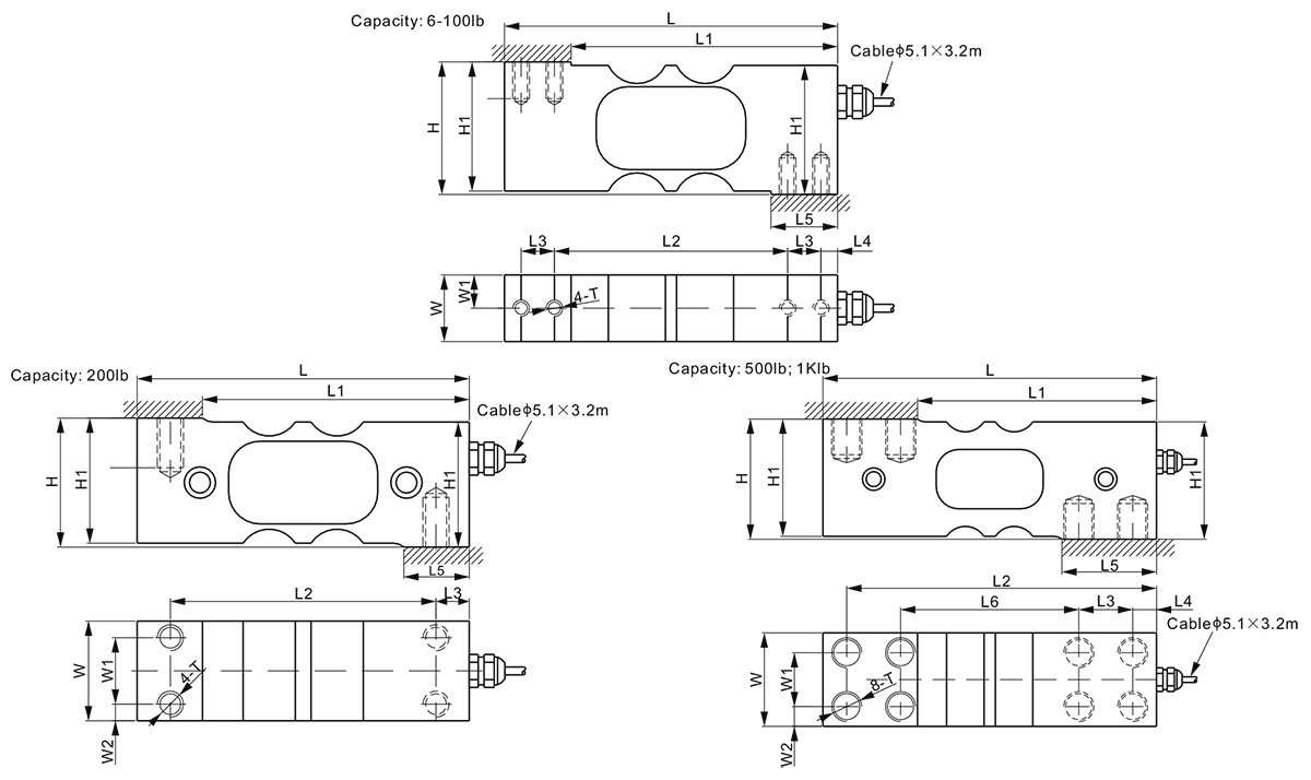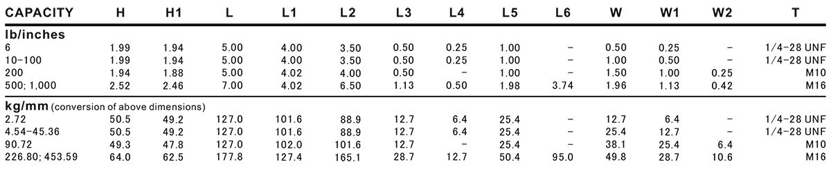 - Rated Capacities: 6lb, 10lb, 15lb, 25lb, 50lb, 100lb, 200lb, 500lb, 1Klb
