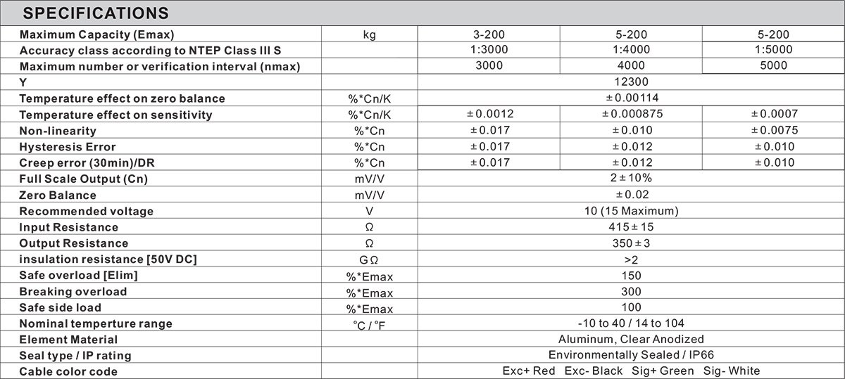 - Rated Capacities: 3kg, 5kg, 7kg, 10kg, 15kg, 20kg, 30kg, 50kg, 75kg, 100kg, 150kg, 200kg
