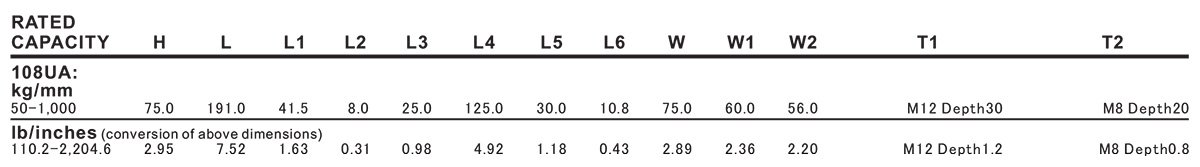 108UA-50kg, 108UA-100kg, 108UA-150kg, 108UA-200kg, 108UA-300kg, 108UA-500kg, 108UA-635kg, 108UA-700kg, 108UA-1t