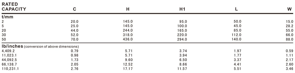 110AH-2t, 110AH-5t, 110AH-20t, 110AH-30t, 110AH-50t