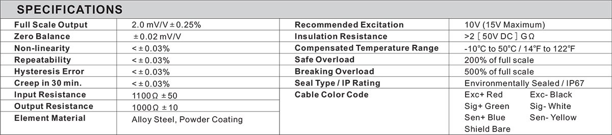 - Full Scale Output: 2mV/V ± 0.25%