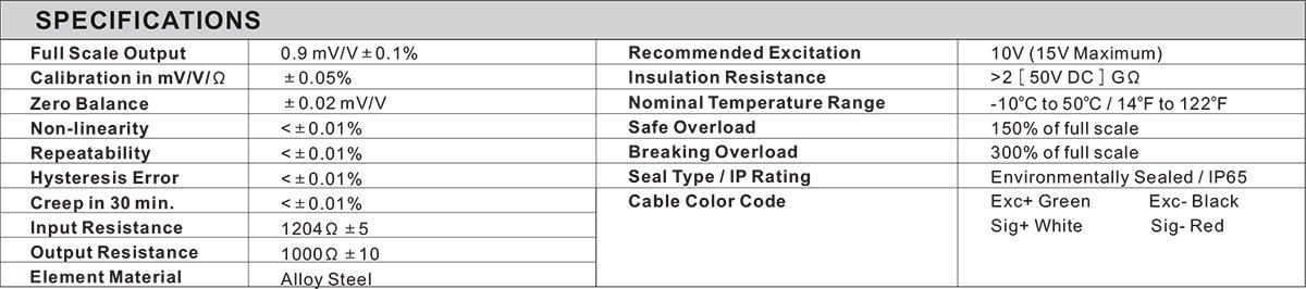 - Full Scale Output: 0.9mV/V ± 0.1%
