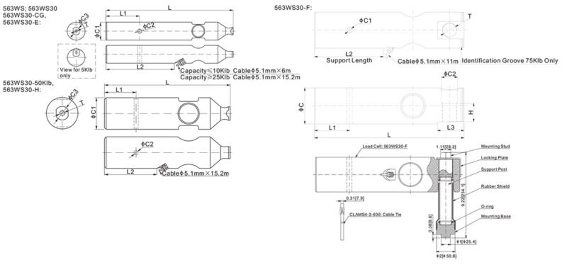 563WS-1.25Klb-YZ, 563WS-2.5Klb-YZ, 563WS-5Klb-YZ, 563WS-10Klb-YZ, 563WS-25Klb-YZ, 563WS-25Klb-YZ-CG, 563WS30-37.5Klb-YZ-CG, 563WS30-37.5Klb-YZ, 563WS30-50Klb-YZ, 563WS30-E-50Klb-YZ-RP, 563WS30-H-50Klb-YZ-RP, 563WS30-F-60Klb-YZ-RP, 563WS30-F-75Klb-YZ-RP