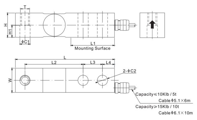 | Rated Capacity (lb/inches) | C1 | C2 | H | H1 | L | L1 | L2 | L3 | L4 | W | T |