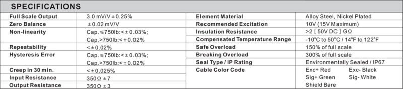 - Rated Capacities: 250lb, 500lb, 750lb, 1Klb, 1.5Klb, 2Klb, 2.5Klb, 4Klb, SE5Klb, 5Klb, 10Klb, 15Klb, 20Klb