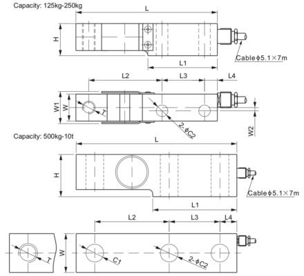 | Rated Capacity | C1 | C2 | H | L | L1 | L2 | L3 | L4 | W | W1 | W2 | T |