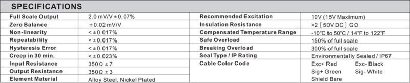 - Rated Capacities: 1Klb, 2.5Klb, 4Klb, 5Klb, 10Klb, 20Klb
