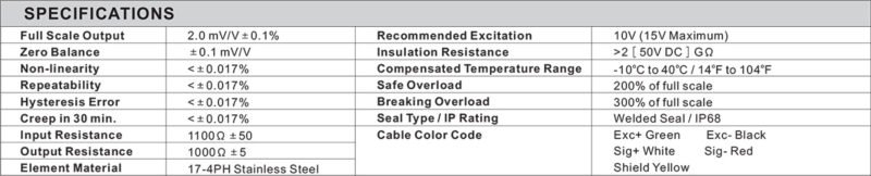 - Full-Scale Output: 2.0 mV/V± 0.1%