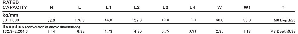 - Rated Capacities: 60kg, 100kg, 150kg, 200kg, 250kg, 300kg, 500kg, 600kg, 750kg, 1t