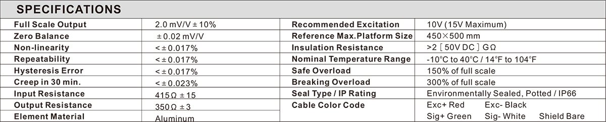 - Full Scale Output: 2mV/V ± 10%