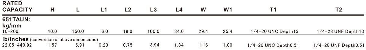 651TAUN-10kg, 651TAUN-15kg, 651TAUN-20kg, 651TAUN-30kg, 651TAUN-50kg, 651TAUN-75kg, 651TAUN-100kg, 651TAUN-200kg