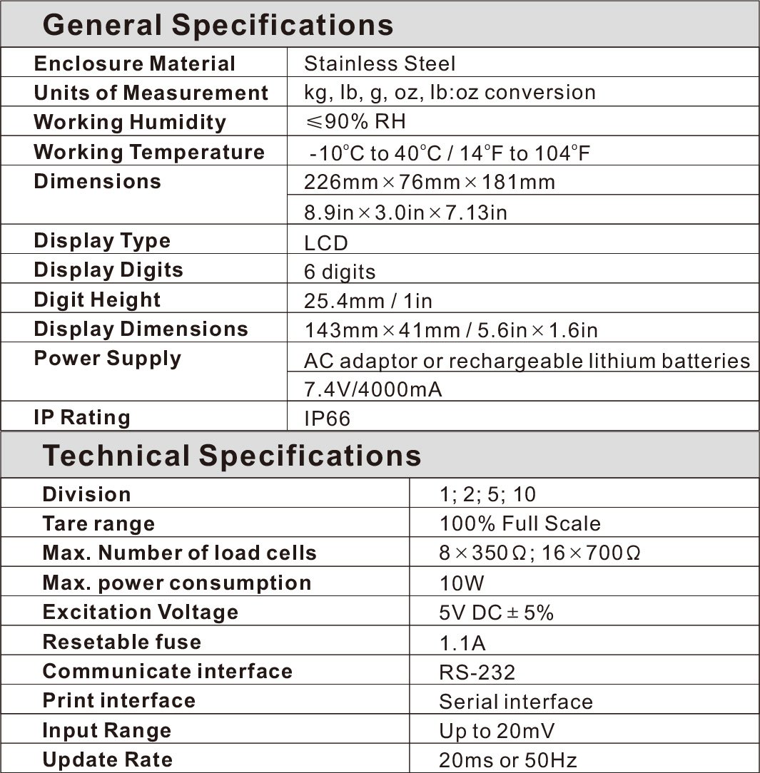 - Functions:Auto Zero Scale, Auto Zero Tracking, PEAK, COUNT, Zero Scale, TARE, GROSS/NET