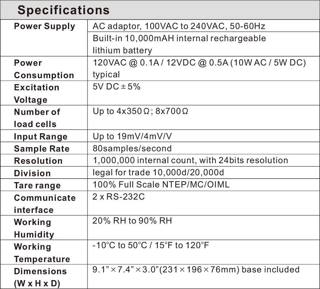- Indication of gross, net, and tare