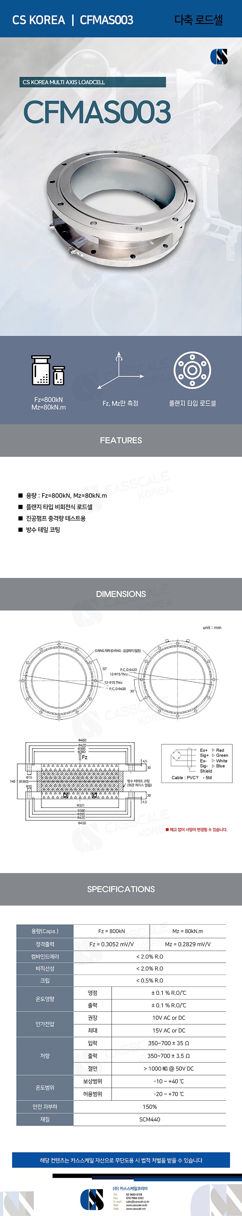 CS KOREA / CFMAS003-800kN / Multi-Axis Load Cell