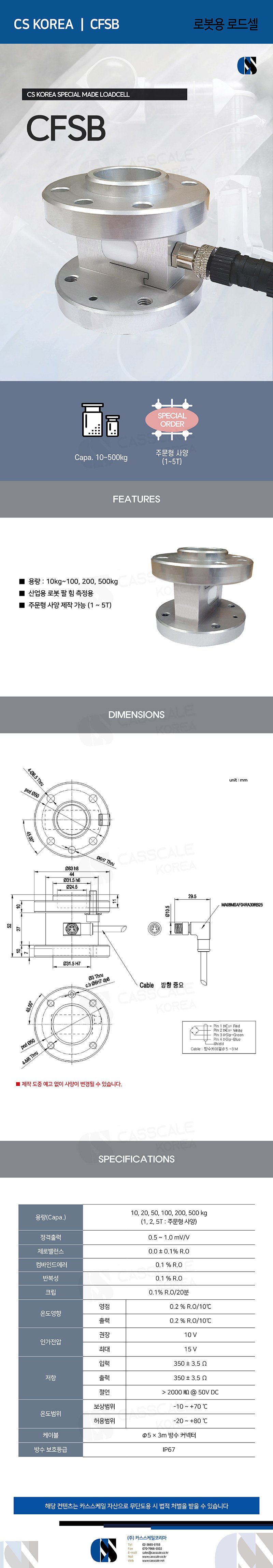■ 용량 : 10kg~100, 200, 500kg ■ 산업용 로봇 팔 힘 측정용 ■ 주문형 사양 제작 가능 (1 ~ 5T) CASKOREA 호환 : FSB-100L