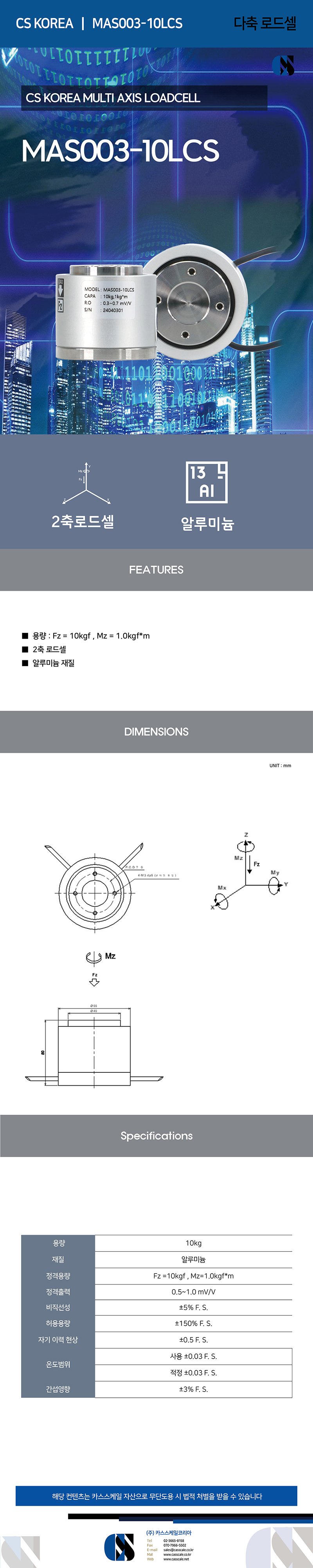 CS KOREA / MAS003-10LCS / Multi-Axis Load Cell