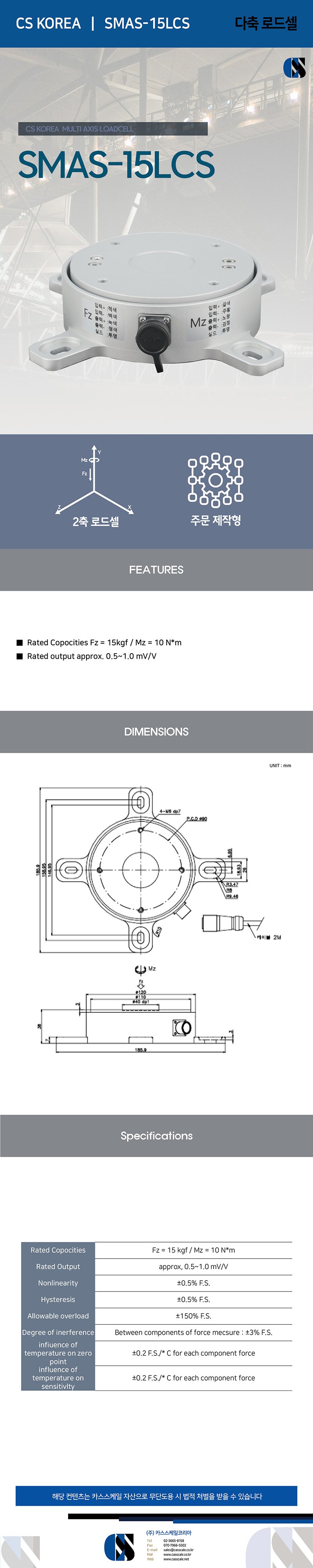 ■ Rated Copocities Fz = 15kgf / Mz = 10 N*m ■ Rated output approx. 0.5~1.0 mV/V