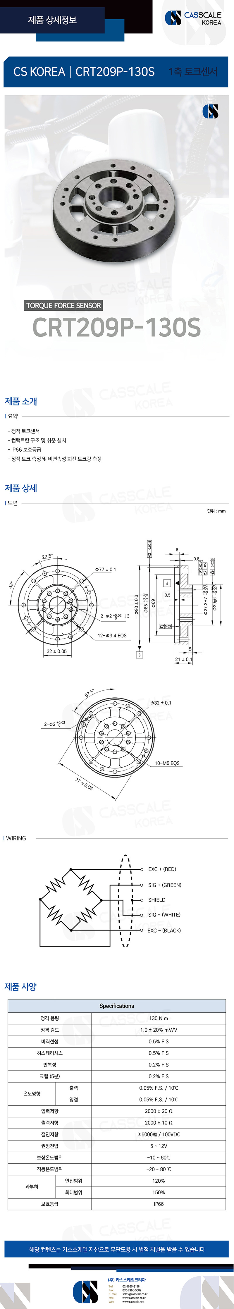 용량 : 130 N.m – 정적 토크센서 – 컴팩트한 구조 및 쉬운 설치 – IP66 보호등급 – 정적 토크 측정 및 비연속성 회전 토크량 측정
