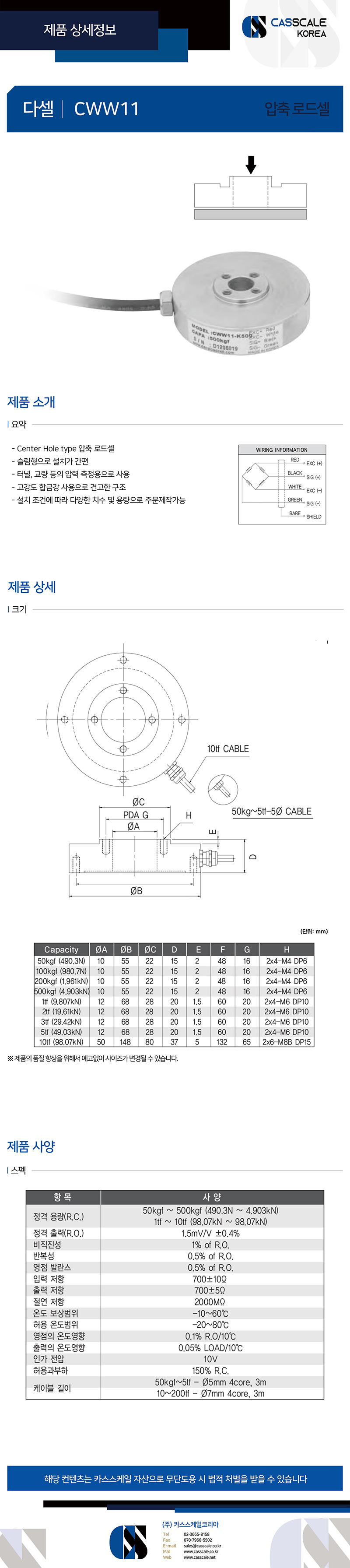 다셀 / CWW11 / 센터홀 압축형 로드셀
