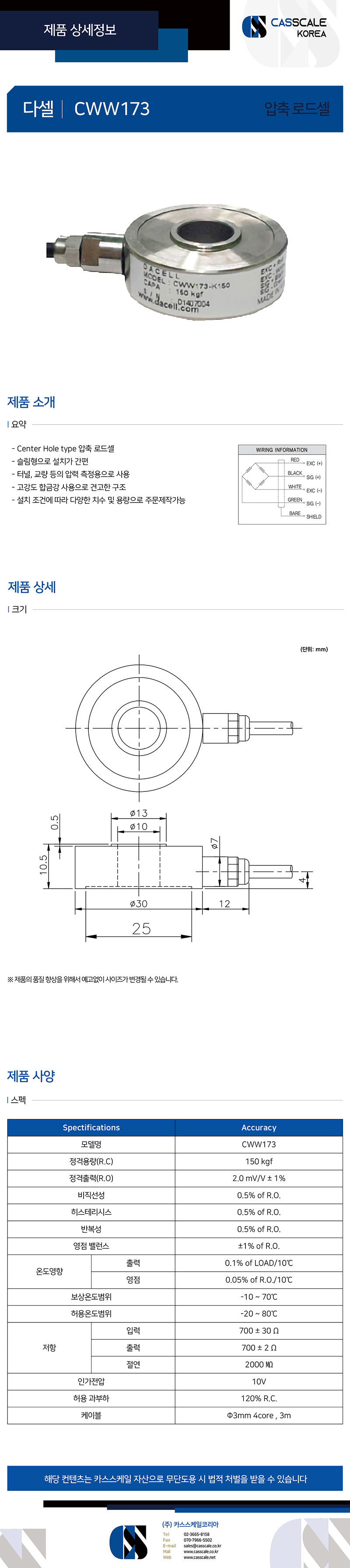 다셀 / CWW173 / 센터홀 압축형 로드셀
