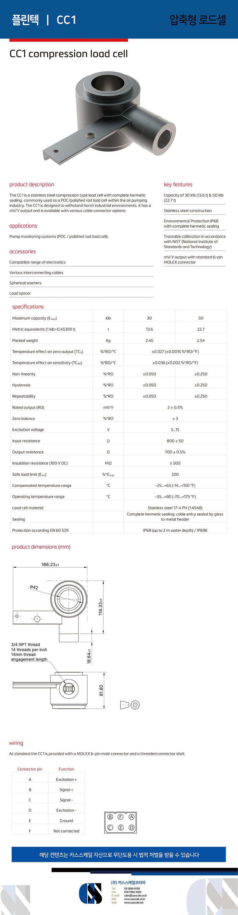 - CC1 — mV/V output; standard 6‑pin Molex connector