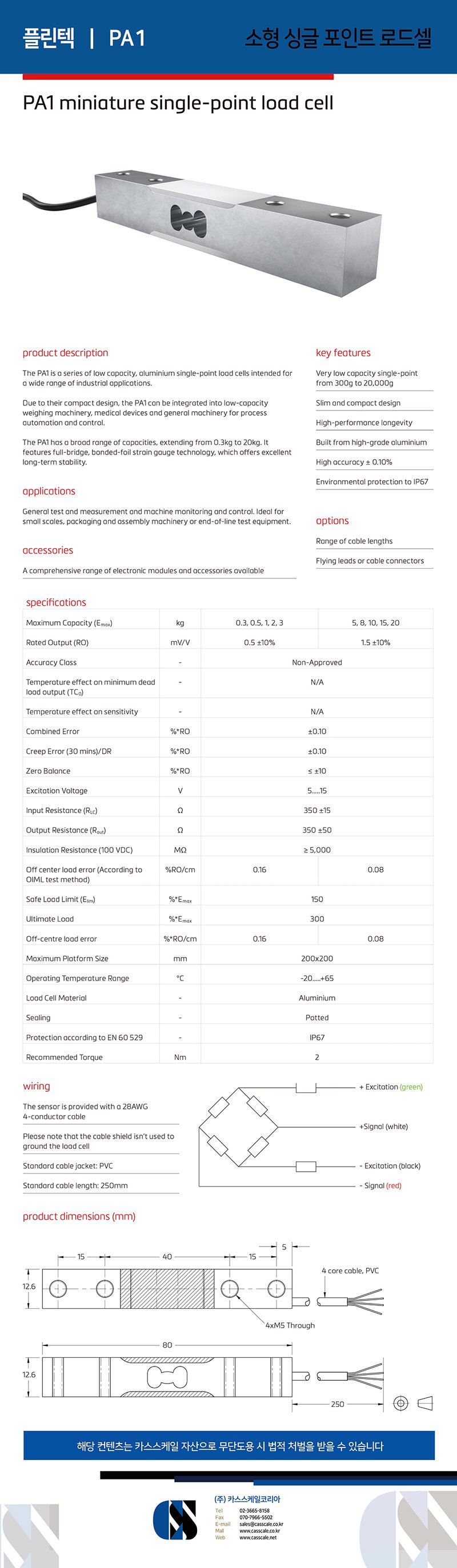 Capacity: 300 g to 20,000 g low-capacity single-point load cell