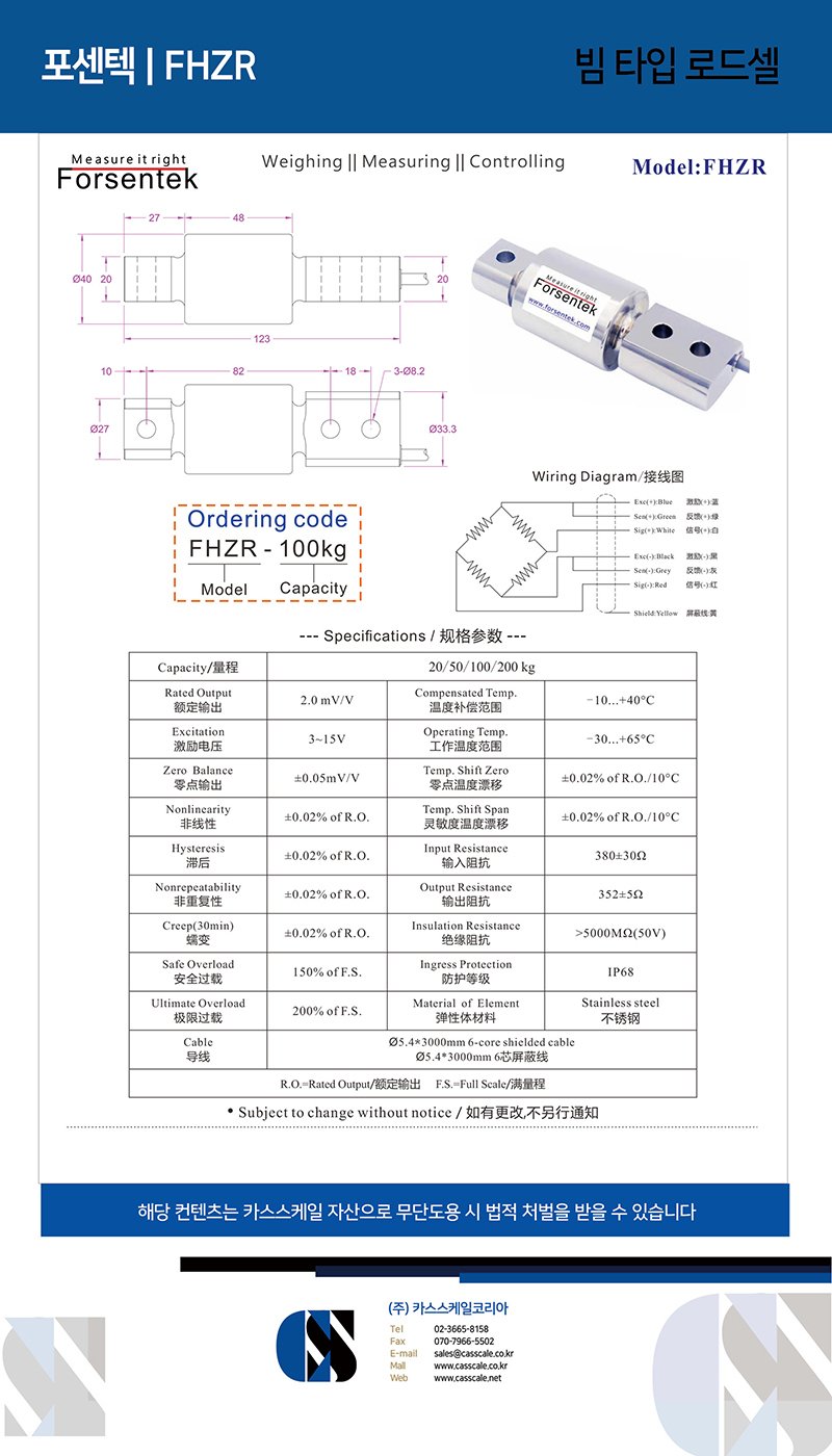 Bending beam load cell FHZR is strain gauge based with robust stainless steel enclosure to withstand extreme mechanical stress and aggressive media. Beam type weight sensor FHZR is available in 20kg, 50kg, 100kg and 200kg four rated capacities, it is temperature compensated and IP68 hermetically sealed, which assures stable performance and long-term reliability in harsh conditions. The smooth design without gaps or edges makes it easy to clean, this enables model FHZR to be used in food industry, production of pharmaceuticals, life sciences and other industries where hygiene is a decisive factor.