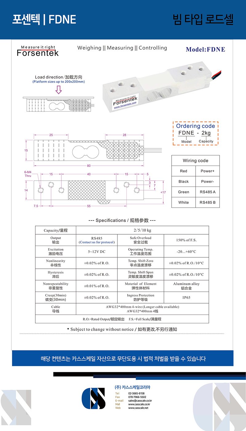 Compact RS485 load cell FDNE utilizes a built-in microprocessor to convert mV/V signal into digital output, which makes digital load cell FDNE more stable and accurate compared to analog load cells. Weight sensor FDNE supports RS485 Modbus RTU protocol with 0-2kg / 0-5kg / 0-10kg three rated measuring ranges to choose from, corner trimmed for off-center load measurement with platform sizes up to 200x200mm. Typical applications of digital load transducer FDNE are for example vending machines, unmanned stores, smart shelves and so on.