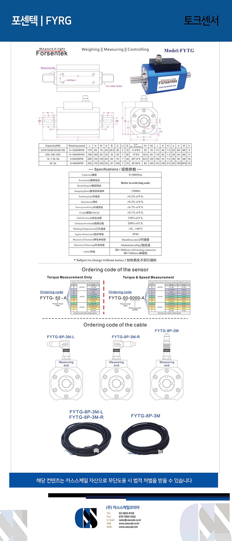 Contactless rotary torque meter FYTG is intended for both torque and speed measurement,there is no friction between rotating shaft and signal collect device thanks to non-contact rotary transformer technology,which makes it much more durable than slip-ring type torque transducer. Dynamic torque sensor FYTG offers 0-2NM / 0-3NM / 0-5NM / 0-10NM / 0-20NM / 0-30NM / 0-50NM / 0-100NM / 0-200NM / 0-300N*m / 0-500NM / 0-1000NM / 0-1500N-m / 0-2000NM / 0-3000NM / 0-5000NM sixteen torque measuring ranges to choose from, both torque and speed channel delivers 0-5V , 0-10V or 4-20mA output. Torque cell FYTG can be mounted in horizontal, vertical and other directions, keyed shafts on both sides of the sensor can be used to connect with motor and load through couplings, the sensor shaft rotates while the housing remains still during measurement. You may find torque meter FYTG applicable for torque measurement of servo motors, impellers, pumps, agitators, engines and so on.
