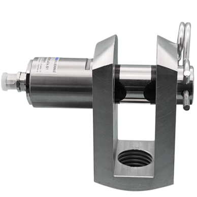 The KMB-IO force measuring bolt was developed specifically for measuring tension and compression forces that are introduced into components (such as lugs and hooks) through clevises. It is used in particular in conjunction with pneumatic or hydraulic cylinders. It can be used wherever suitable clevises are available or can be easily retrofitted.